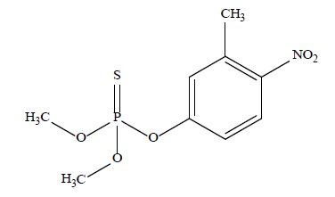雜質規格 | S-methyl fenitrothion: ≤ 5 g/kg; | 0,0,0',0'-tetraethyl thiopyrophosphate (0, S-TEPP): ≤ 0.2 g/kg 0,0,0',0'-tetraethyl dithiopyrophosphate (S, S-TEPP): ≤ 2.5 g/kg Water: ≤ 0.6 g/kg Acidity: ≤ 0.3 g/kg (以H2SO4計算) |