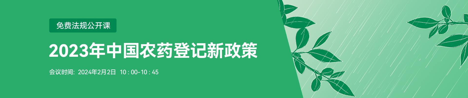 2023年,中國農業農村部(MARA)和農藥檢定所ICAMA發布了許多新的農藥法規,涵蓋登記管理,農藥生產管理和農藥禁限用等方面。這些變化將對中國農藥行業以及向中國出口農藥的企業產生重大影響。瑞旭集團將于2024年2月2日舉辦免費線上法規公開課《2023年中國農藥登記新政策》,重點介紹中國農藥登記新政策和農藥登記審批的最新進展,幫助您應對中國農藥登記復雜的法規挑戰。