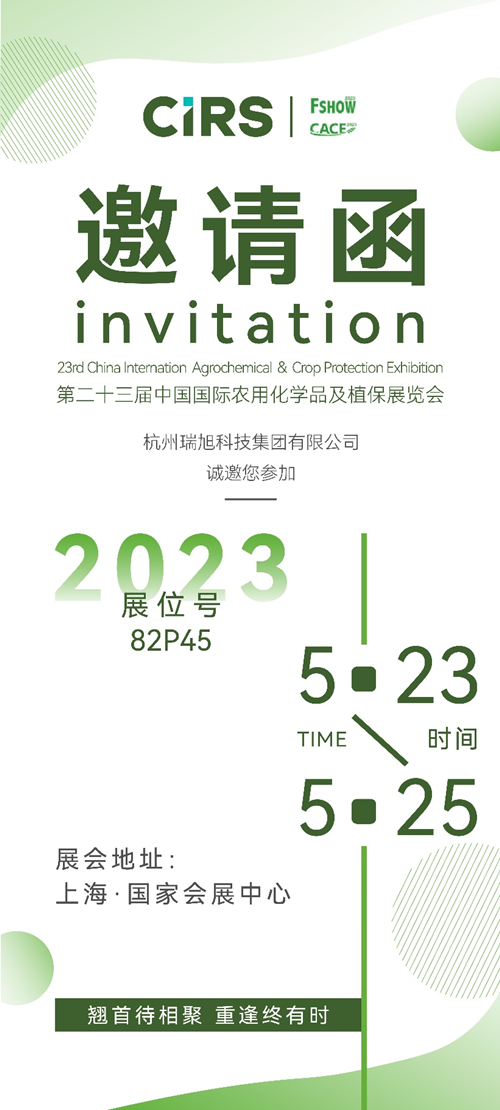 2023年5月23~25日,由中國國際貿易促進委員會化工行業分會主辦的第二十三屆中國國際農用化學品及植保展覽會CAC將在上海強勢回歸。瑞旭集團作為專業的全球化學品合規咨詢服務機構,也將攜手專業團隊亮相展會現場,展位號:82P45,期待各位新老客戶蒞臨!