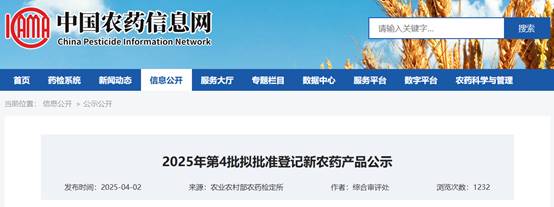 根據《行政許可法》《農藥管理條例》有關規定,現將第十屆全國農藥登記評審委員會第五次委員會議審議通過的6個新農藥產品相關信息予以公示。如對公示內容有異議,請在公示期內以傳真或電子郵件形式實名反饋(包含反饋人姓名、所在單位及聯系方式,對未實名反饋的,將不予以回復對未實名反饋的,將不予以回復)。