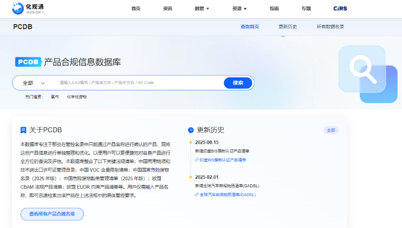 全新的產品合規數據庫,可通過“產品名稱”進行檢索,鎖定相關產品合規狀態。數據來自官方權威發布,后續將持續更新。