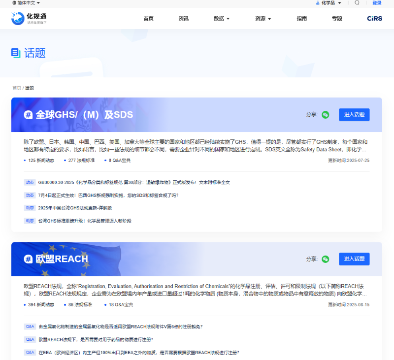 亮點三:化規通話題聚合——全球法規,一網打盡
