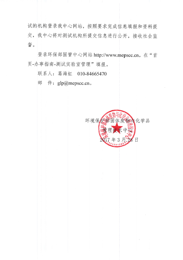 根據環保部《關于規范化學品測試機構管理的公告》(2016年第85號)對提供新化學物質測試數據的境內測試機構加強信息公開的要求,固體廢物與化學品管理技術中心(SCC)為給測試機構信息公開提供服務,組織開發了“化學品測試數據質量管理系統”。2017年3月31日,SCC發布了《關于啟動“化學品測試數據質量管理系統”試運行的通知》。詳細通知見以下內容: