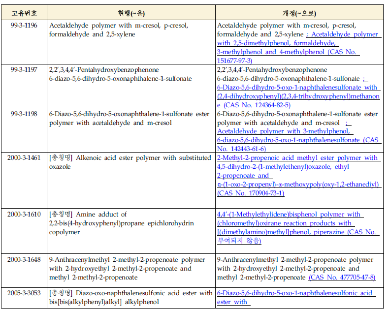 1)因數據保護期到期而修訂為原始化學名稱(201例,包括刪除4例被認定為相同的物質)