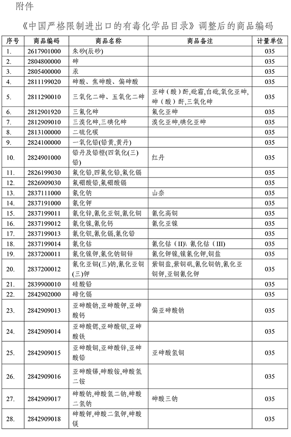 2016年12月30日,環保部固體廢物與化學品管理技術中心發布有毒化學品進出口環境管理登記商品編碼調整的通知。詳情如下: