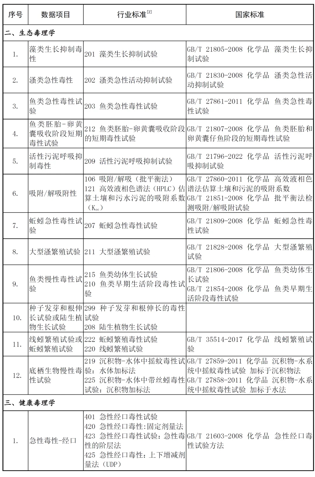 3.化學物質環境與健康危害測試方法系列標準