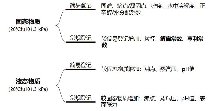 根據申請物質在常溫常壓下(20℃和101.3 kPa)的物理狀態,提交所申請新化學物質理化性質數據,理化性質全部作為基本數據提交,具體要求見下圖。