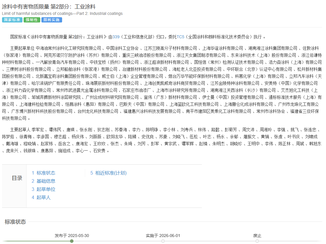 兩項標準的起草均嚴格遵循GB/T 1.1—2020《標準化工作導則 第1部分:標準化文件的結構和起草規則》。均由工業和信息化部(339)歸口管理,具體執行工作委托全國涂料和顏料標準化技術委員會(TC5)負責。