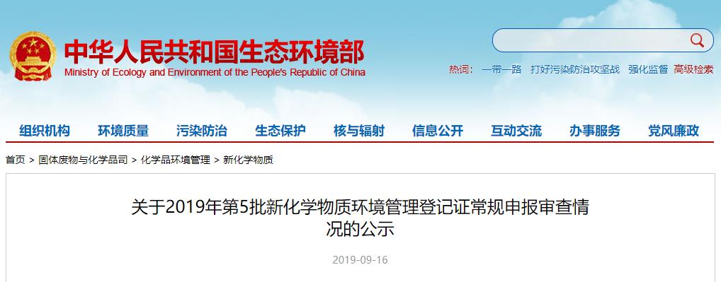 2019年第5批擬批準的新化學物質環境管理登記證明細表