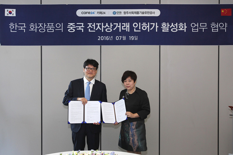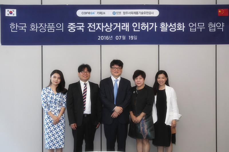 2016年7月19日上午,杭州瑞旭產品技術有限公司與韓國鑫潽瑞科技股份有限公司(CAFE24)正式簽署了合作協議,這標志著兩家的合作正式啟動。我們將通過緊密合作,集合各方力量,發揮優勢,形成整體合力,協助中韓化妝品企業高效應對化妝品管理法規。出席的雙方管理層代表分別為杭州瑞旭產品技術有限公司總經理李妍、韓國鑫潽瑞科技股份有限公司(CAFE24)李在碩總經理。
