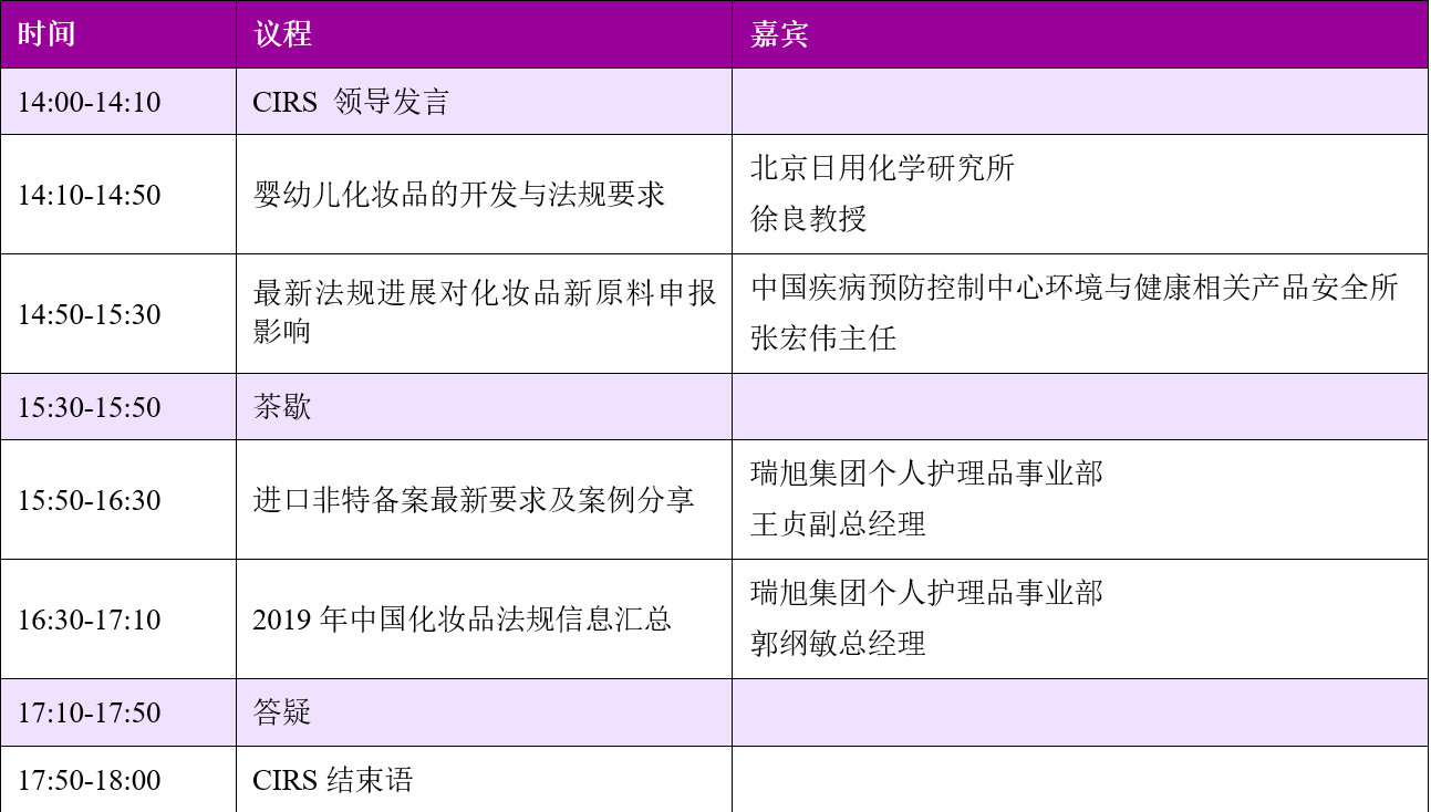 中國首次進口非特殊用途化妝品自2018年11月10日起全國統一備案管理后,企業根據境內責任人注冊所在地向國家或地方藥監局提交備案申請。通過形式審查后的產品即可獲得電子備案憑證開展進口活動。由于該政策無過渡期,下放一年多以來,各個地方藥監局的形式審查要求仍存在尺度不一。同時,2019年是中國化妝品法規變動大年。其中包括國家藥監局全面放開化妝品注冊和備案檢驗機構資質要求,進口非特化妝品動物實驗豁免條件征求意見等。因此,在瑞旭集團韓國子公司CIRS Group Korea成立一周年之際特別邀請國家藥監局的資深評審專家向韓國化妝品企業分享最新關于中國化妝品及新原料管理的相關政策信息及注冊備案評審要求。