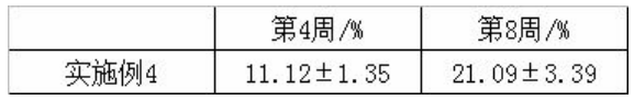 試驗結果:實施例4受試者的皮膚皺紋特征計數隨著使用時間4周、8周, 皺紋數在減少,8周時皺紋特征計數、皺紋分值減少更顯著。皺紋特征計數變化率%=(測試周的皺紋特征計數-第0周的皺紋特征計數)/第0周的皺紋特征計數*100%。
