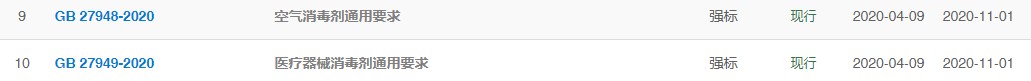 中華人民共和國衛生部和中國國家標準化管理委員會曾在2011年12月30日發布了GB 27952-2011 《普通物體表面消毒劑的衛生要求》,并于2012年05月01日實施至今,作為普通物表消毒劑的主要參考標準。疫情以來消毒產品增多,消毒行業規范性提升,國家市場監督管理總局、中國國家標準化管理委員會于2020年04月09日發布了GB 27952-2020 《普通物體表面消毒劑通用要求》,并于2020年11月01日實施。標準中提到與GB 27952-2011 《普通物體表面消毒劑的衛生要求》相比,其主要技術變化如下: