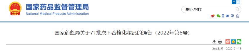 - 國家藥監局關于2批次不合格化妝品的通告(2021年第55號)