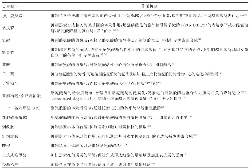 圖4 美白功效原料及其相關作用機制