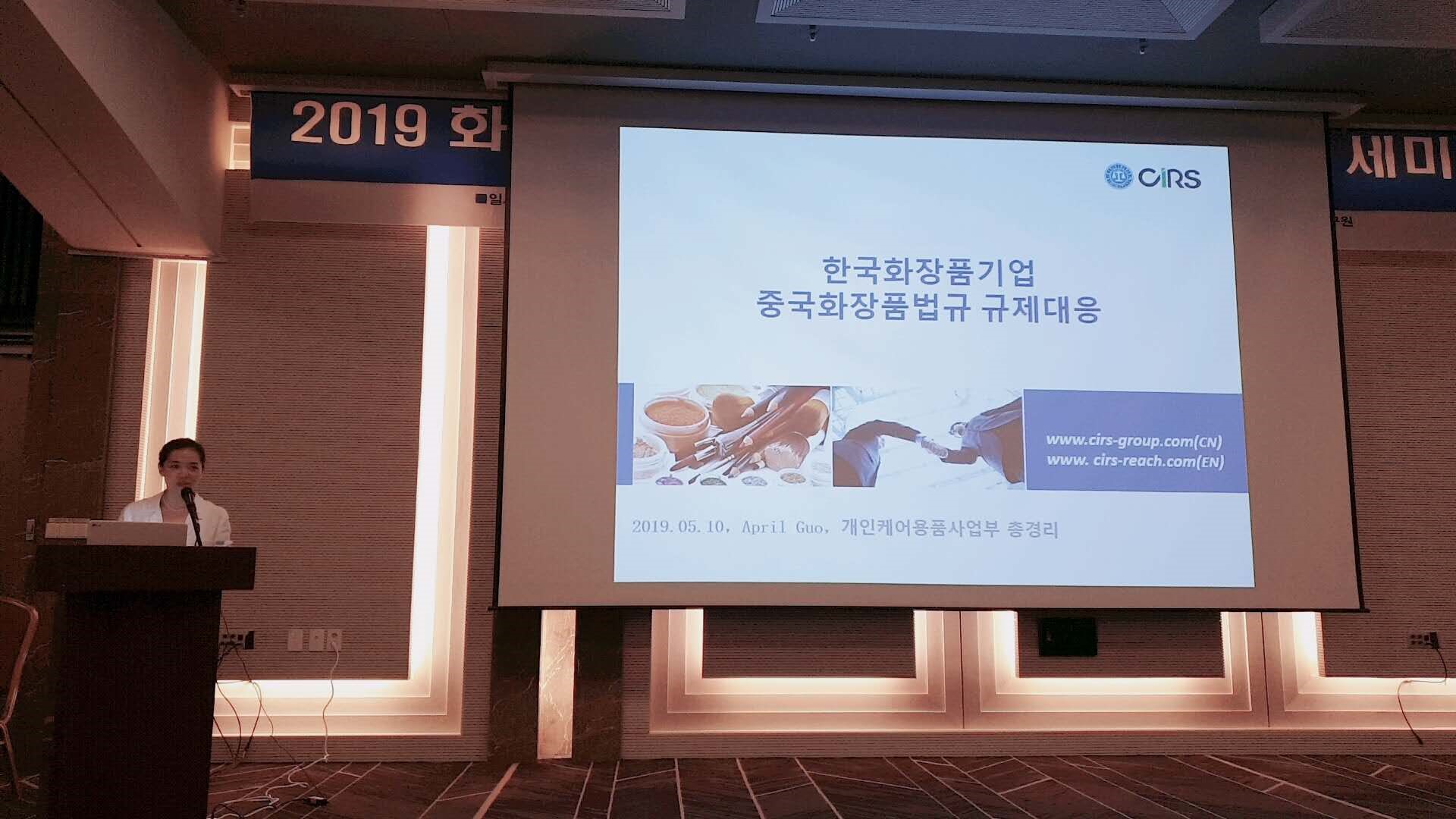 研討會由忠北大學崔尚淑教授主持,來自瑞旭集團中國公司的April Guo向韓國化妝品企業介紹了如何應對中國法規變化。內容包括近幾年通過注冊或者備案的化妝品數據,由此了解中國化妝品市場情況;以及化妝品成品及原料的注冊備案流程;進口非特備案新政下對境內責任人的要求及對各個地方備案的成功案例分享。