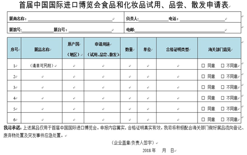 - 參展商對試用化妝品應事先以書面形式向上海海關申請(申請書見附件1)