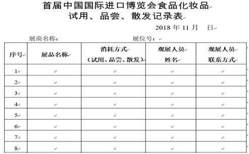 - 參展商應做好試用記錄(記錄表見附件2),確保相關產品緊急情況下可召回、可追溯。