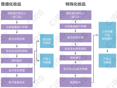 目前,除了跨境電商渠道銷售的化妝品免于注冊備案外,其他渠道銷售的化妝品(普通美容皂除外)需要通過國家藥品監督局管理局(NMPA)或地方藥品監督管理局完成化妝品注冊備案后才能上市銷售。國家對特殊化妝品實行注冊管理,對普通化妝品實行備案管理。