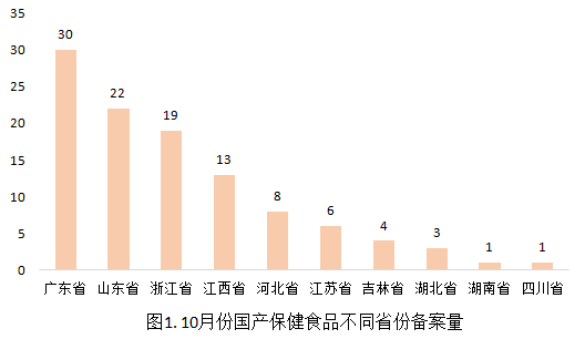 截至2018年10月31日,10月份已備案國產保健食品數量為107款,具體數據如下: