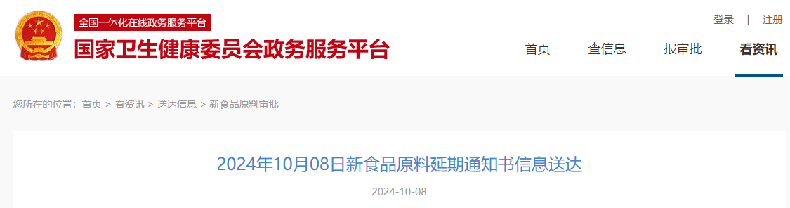 2024年10月7日至10月13日,國家衛生健康委員會政務服務平臺發布“三新食品”審批情況,其中包括: