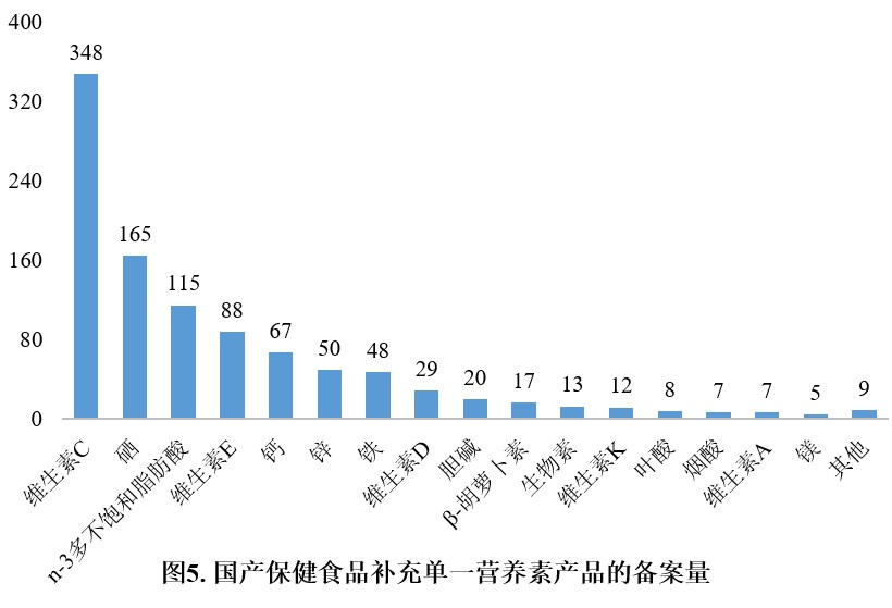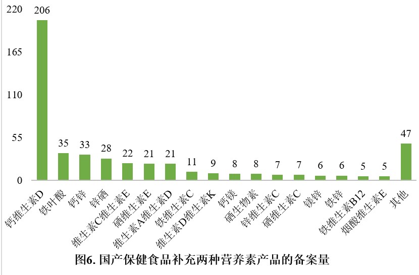 在營養素補充劑中,補充維生素C的產品、補充鈣和維生素D的產品以及補充多種維生素礦物質的產品為三大主流產品,備案數量分別為348款、206款和586款。