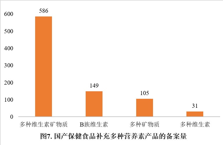 在營養素補充劑中,補充單一營養素的產品較多,備案數量為1008款,其次為補充多種營養素的產品和補充兩種營養素的產品,分別為871款和485款。