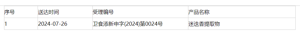 - 不予行政許可決定書信息送達4例(新食品原料新品種:吡咯并喹啉醌二鈉鹽、鼓槌石斛花、櫻花提取物 食品添加劑新品種:迷迭香提取物)