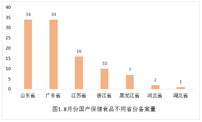 截至2018年8月31日,8月份已備案國產保健食品數量為104款,具體數據如下: