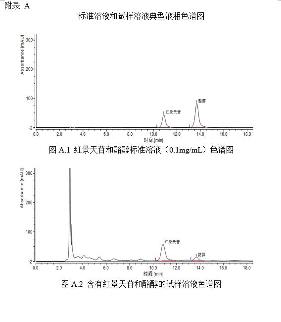 3.3.4 酪醇標準工作液:將酪醇標準儲備液(3.3.3)用甲醇(3.1.2)稀釋制備一系列標準溶液,標準系列濃度為0.00mg/mL、0.01mg/mL、0.02mg/mL、0.05mg/mL、0.10mg/mL、0.20mg/mL,臨用時配制。