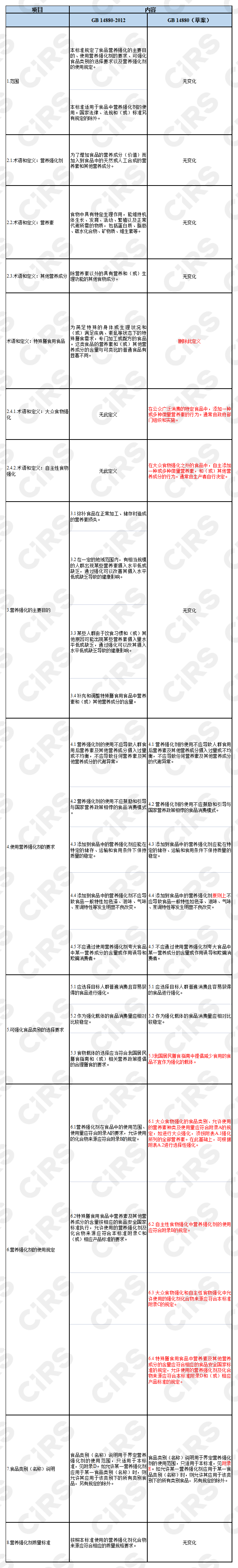 為方便企業快速了解GB 14880(草案)與2012版標準的區別,瑞旭集團制作了如下簡要對照表。