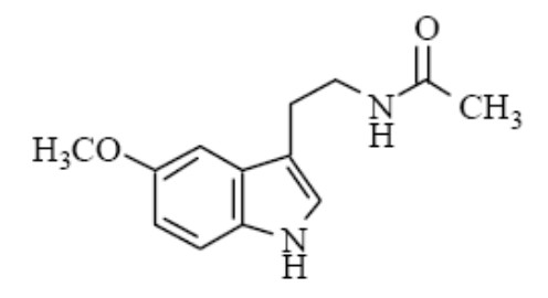 褪黑素原料是以合成的5-甲氧基色胺經過乙酰化制得。化合物名稱為N-乙酰基-5-甲氧基色胺,分子式為C13H16N2O2