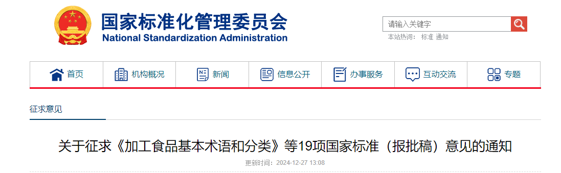 關于征求《加工食品基本術語和分類》等19項國家標準(報批稿)意見的通知