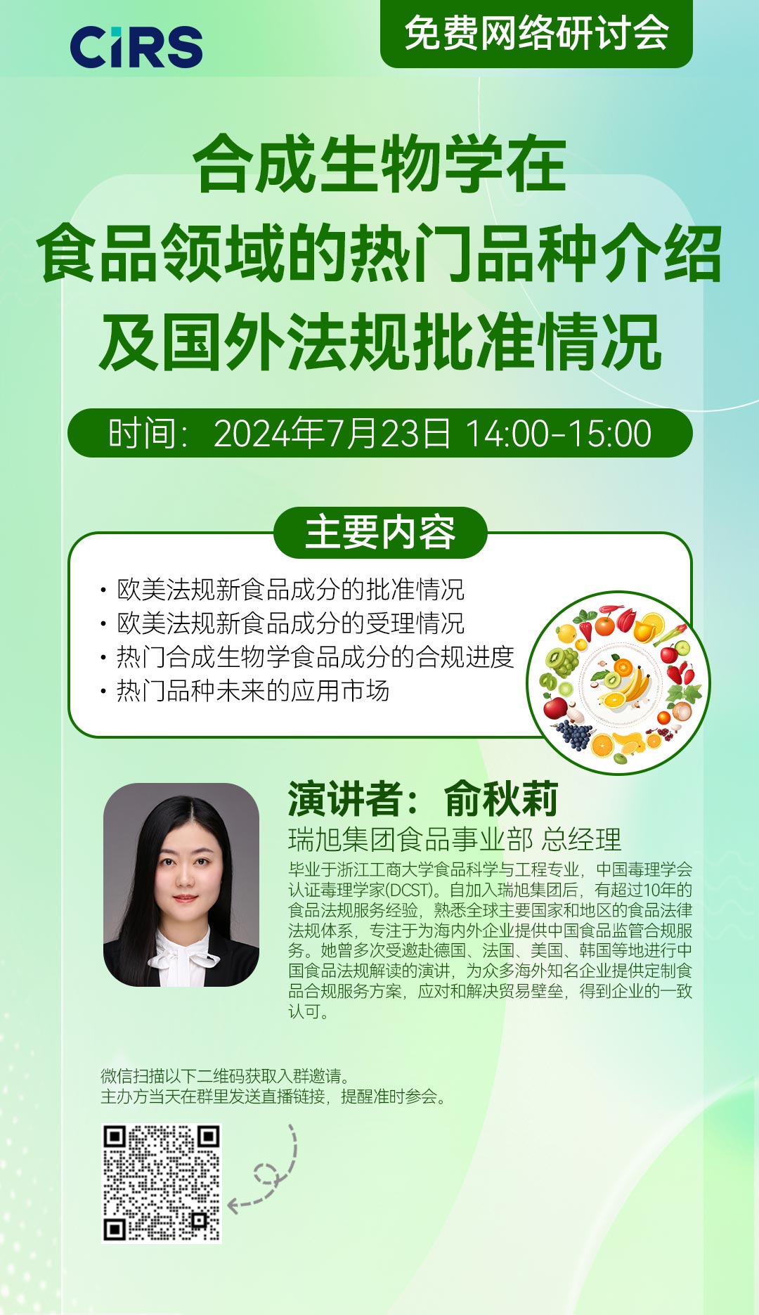 2)微信掃描以下二維碼添加瑞旭集團-劉嘉欣為好友,獲取入群要求。主辦方當天在群里發送直播鏈接,提醒準時參會。