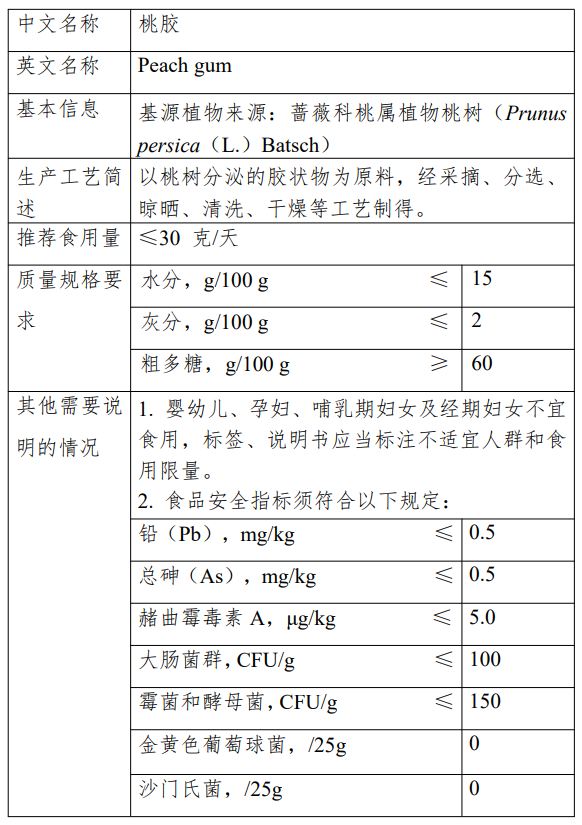 參考網站及背景資料詳見:桃膠等4種新食品原料公開征求意見