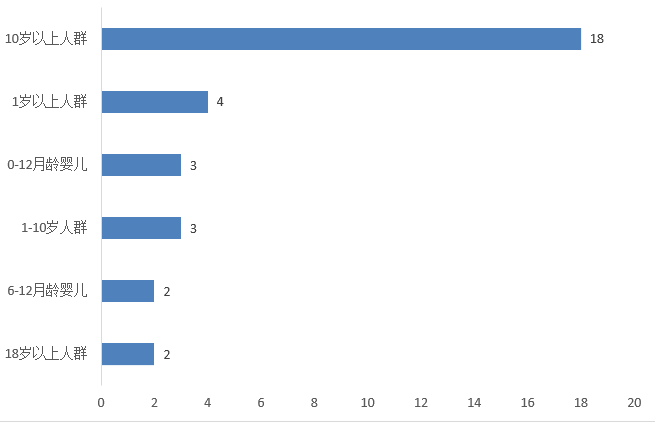 如下圖4所示,2025年上半年注冊批準的特醫食品中,適用于10歲以上人群的產品數量最多,共18款,占獲批總數的56%,其中細分適用于18歲以上人群的有2款。其次為適用于1歲以上人群的產品,共4款,占獲批總數的13%,細分1-10歲人群的有3款。另外還有3款產品的適用人群是0-12月齡嬰兒,2款產品的適用人群是6-12月齡嬰兒。