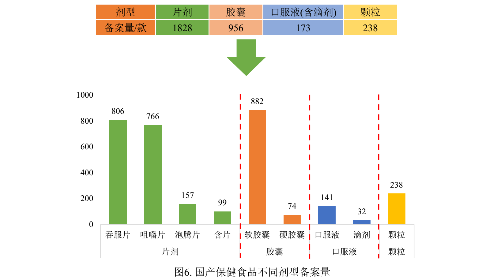 保健食品備案產品劑型目前包括片劑、膠囊、口服液和顆粒。