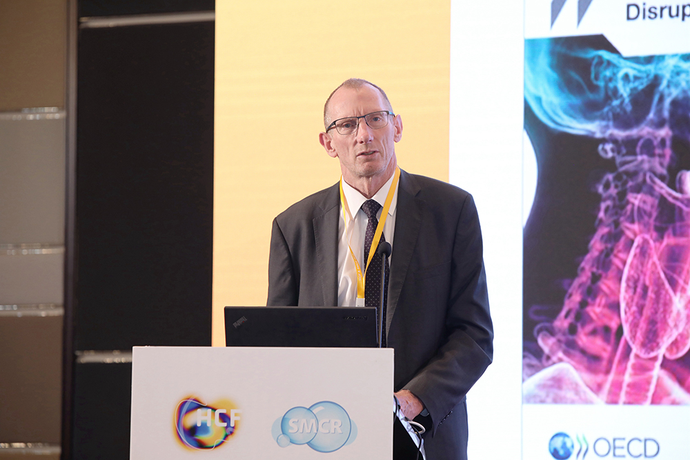來自經濟合作與發展組環境理事會(OECD)Anthony Cox副理事長和聯合國環境規劃署經濟部 (UNEP)Tim Kasten副總監就妥善管理化學品和廢棄物以實現全球可持續發展及如何合作化解決工業化學品管理體系面臨的挑戰做主題演講,希望有更多的國家、跨國集團、國際組織參與進來共同提升化學品監管。