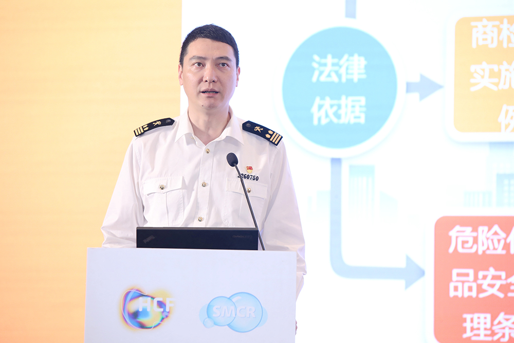 上海海關商品檢驗處劉峰副處長向參會企業介紹上海口岸進出口危險貨物及其包裝檢驗。會上,劉處長重點講解上海口岸進出口檢驗的不合格情況,呼吁進口商和國外發貨人加強對中國危險化學品管理政策的了解與執行,防范危包不合格風險。