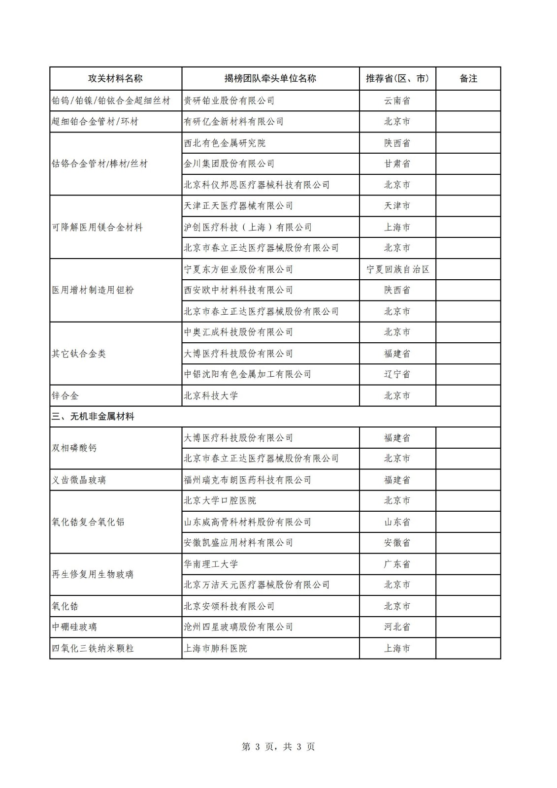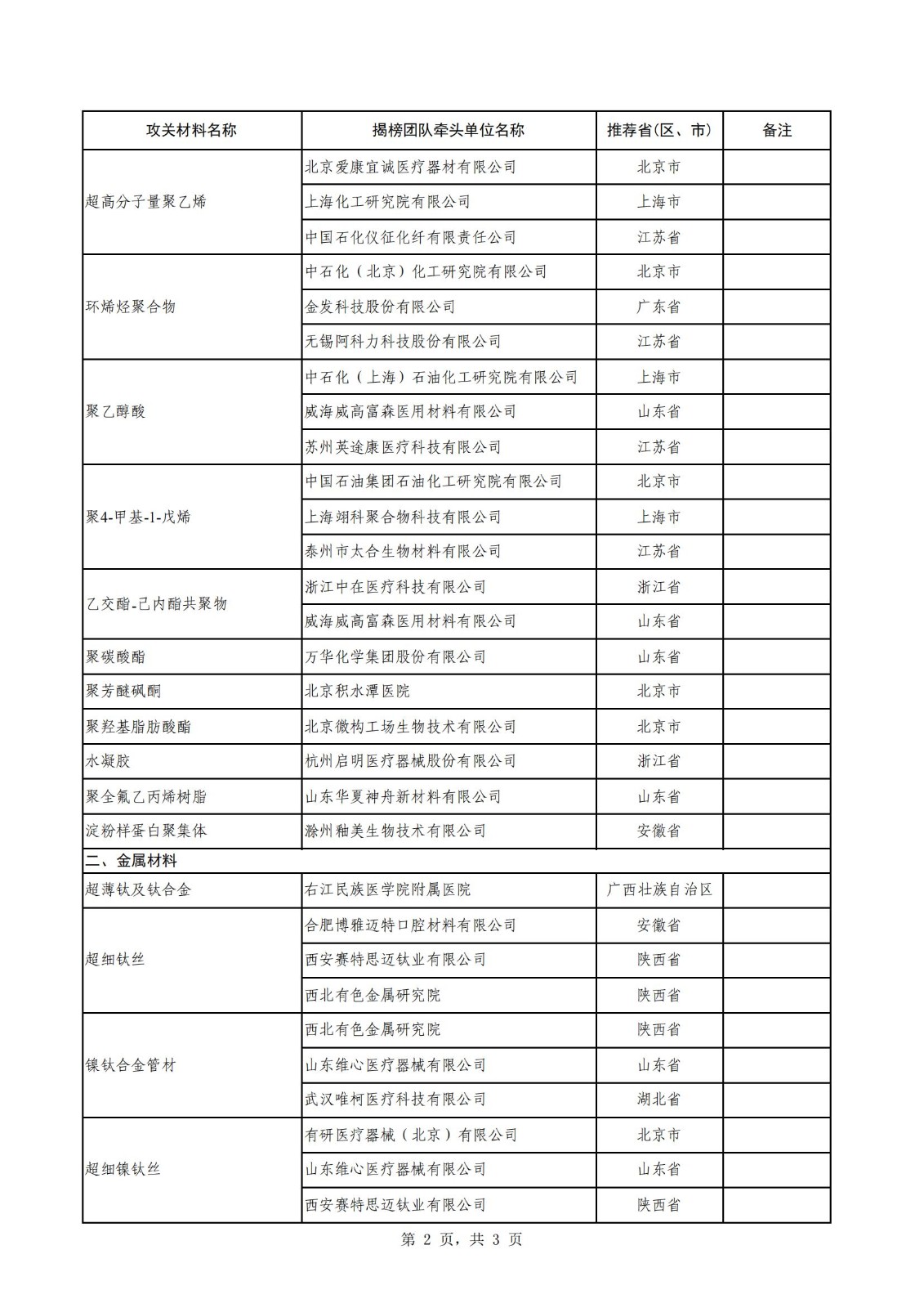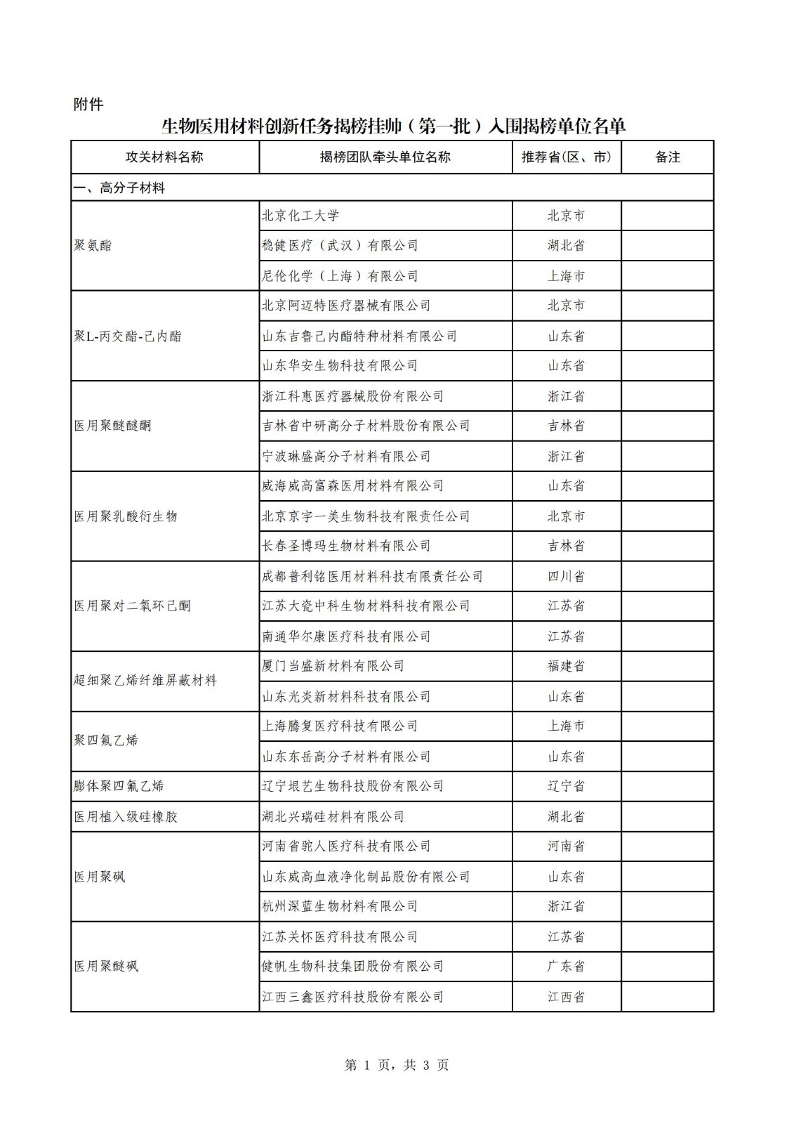 附件:生物醫用材料創新任務揭榜掛帥(第一批)入圍揭榜單位名單