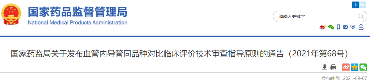 為加強醫療器械產品注冊工作的監督和指導,進一步提高注冊審查質量,國家藥品監督管理局組織制定了《血管內導管同品種對比臨床評價技術審查指導原則》,現予發布。
