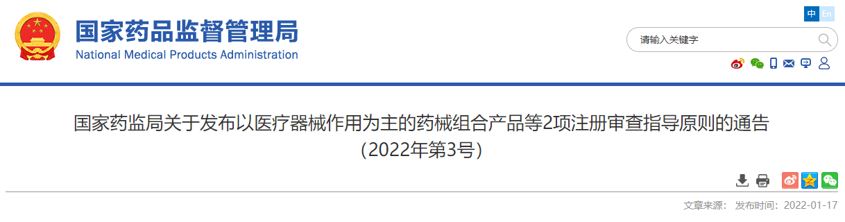 為加強對藥械組合產品注冊工作的監督和指導,進一步鼓勵具有臨床價值的藥械組合產品上市,構建適合我國國情的藥械組合產品的管理模式,國家藥品監督管理局將藥械組合產品技術評價作為監管科學研究項目,組織制定了《以醫療器械作用為主的藥械組合產品注冊審查指導原則》《以醫療器械作用為主的藥械組合產品中藥物定性定量及體外釋放研究注冊審查指導原則》,現予發布。特此通告。