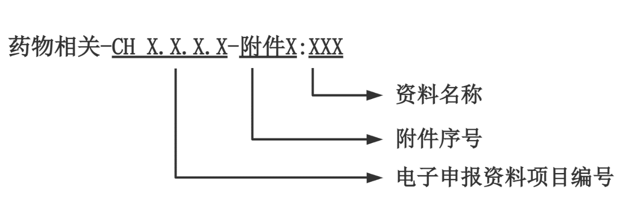 申請人應按照醫療器械注冊電子申報系統(eRPS)格式要求準備相關申報資料,并在CH3.8(其他資料)提交藥物相關產品描述、藥物和/或醫療器械與藥物相互作用、藥物含量/劑量選擇資料。同時在CH3.8項提交相關研究總結,若具體研究資料在其他eRPS項目提交,需明確相應的eRPS項目編號及文件名稱。如適用,建議其他項目中藥物相關資料以附件形式提交,資料名稱宜參照以下命名規則:
