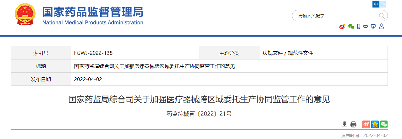 實施醫療器械注冊人制度是推進醫療器械審評審批制度改革、加強醫療器械全生命周期管理的重要舉措。隨著《醫療器械監督管理條例》(國務院令第739號)的施行,注冊人制度全面實施,醫療器械生產組織形式更加多樣,特別是醫療器械注冊人跨省、自治區、直轄市進行委托生產(以下簡稱“跨區域委托生產”),涉及省級藥品監管部門的職責分工與協調配合,給監管工作帶來新的挑戰。為切實加強醫療器械注冊人跨區域委托生產監管,夯實注冊人醫療器械全生命周期質量管理責任,加強監管部門協同配合,保障醫療器械質量安全,現提出以下意見。