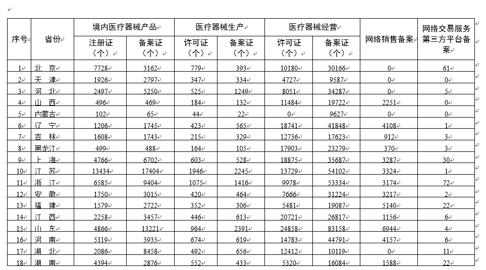各省醫療器械許可備案相關信息(截至2021年6月30日)