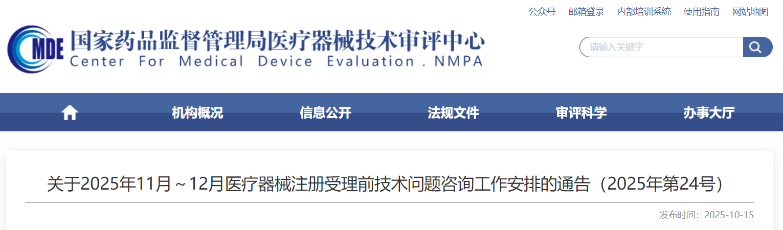 二、自2024年11月起,每個受理前技術問題咨詢日各審評部、臨床部、綜合業務部可供預約的現場咨詢號數量為20個,預約方式不變。按照中心2022年10月16日發布的《關于醫療器械受理前技術問題咨詢工作安排調整的通告》(2022年第37號)的要求申請和辦理。未預約現場咨詢或預約未成功的單位,可選擇郵件方式提交咨詢申請。各受理前技術問題咨詢參與單位咨詢時間安排同器審中心,但不受輪值部門限制。