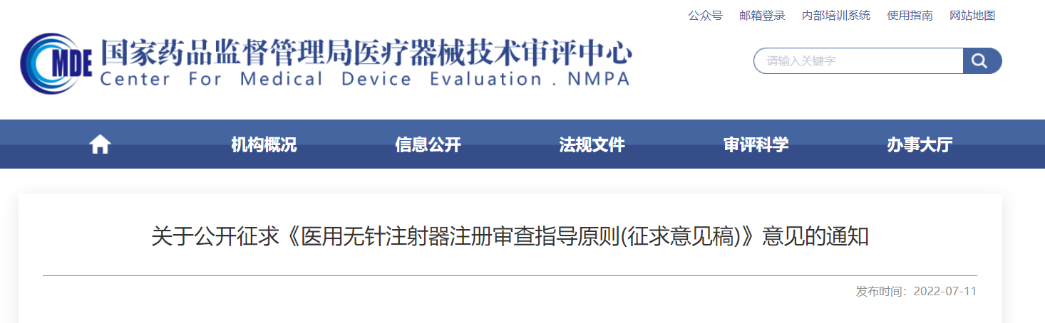 根據國家藥品監督管理局醫療器械注冊技術指導原則制修訂計劃的有關要求,我中心組織起草了《醫用無針注射器注冊審查指導原則》,經文獻調研、專題研討等程序形成了征求意見稿(附件1),即日起在網上公開征求意見。