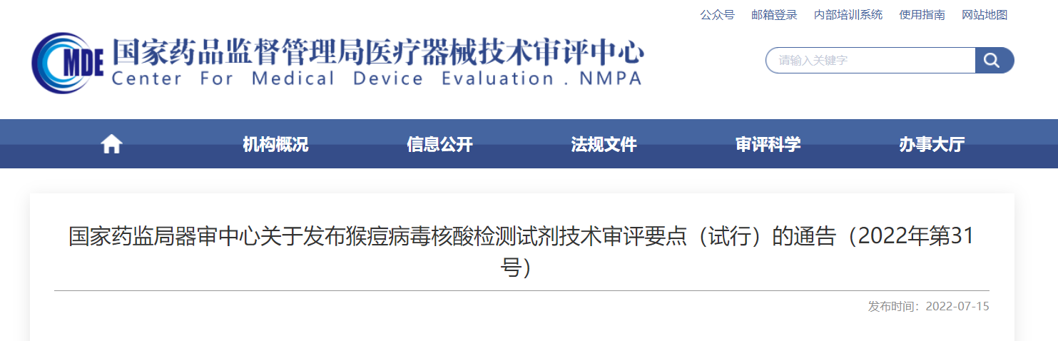 為規范猴痘病毒核酸檢測試劑技術審評工作,國家藥監局器審中心組織編寫了《猴痘病毒核酸檢測試劑技術審評要點(試行)》,現予發布。