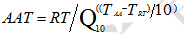 AAT:加速老化時間;RT:實時老化時間;Q10:溫度升高或降低10℃的老化系數;TAA:加速老化溫度;TRT:預設的實際儲存溫度環境溫度。