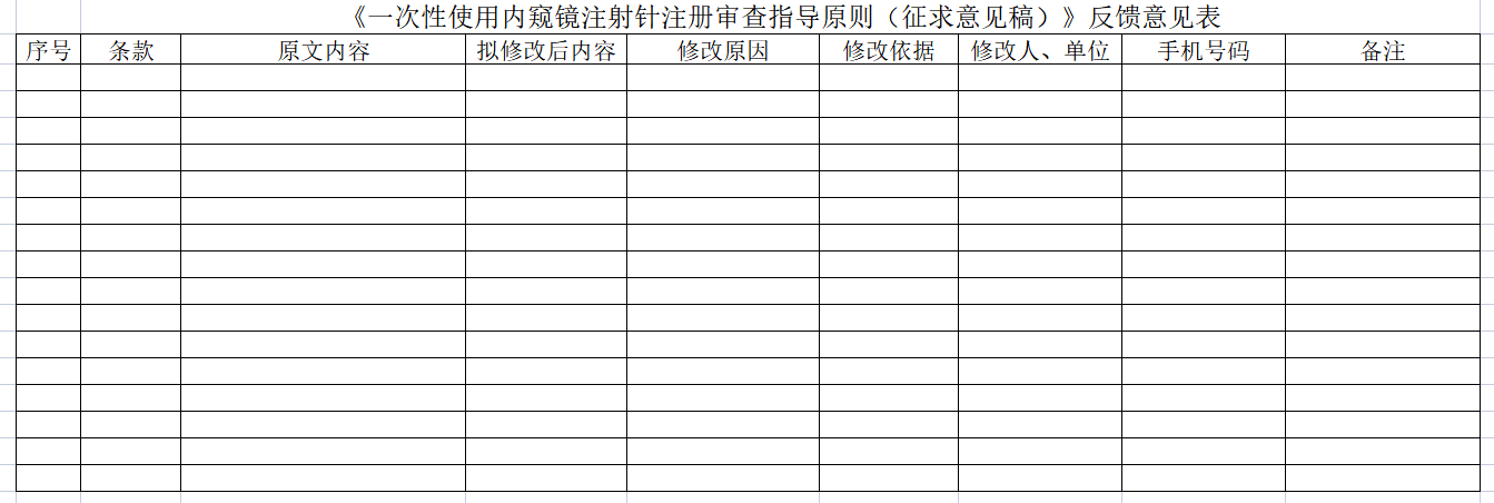 2.《一次性使用內窺鏡注射針注冊審查指導原則(征求意見稿)》反饋意見表